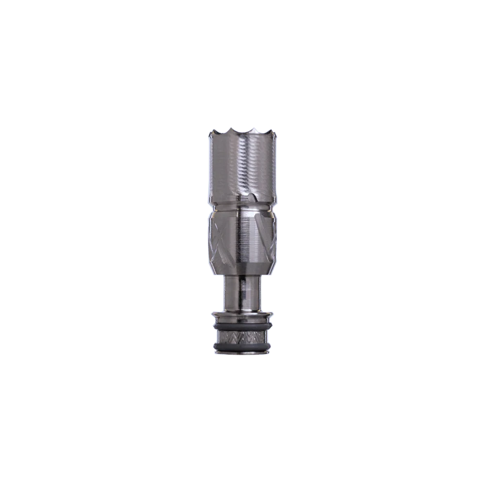 Heavier stainless tip for stronger extractions, twist-to-set airport at the mouthpiece, condenser placement options, and a tougher, two-tone finish.
