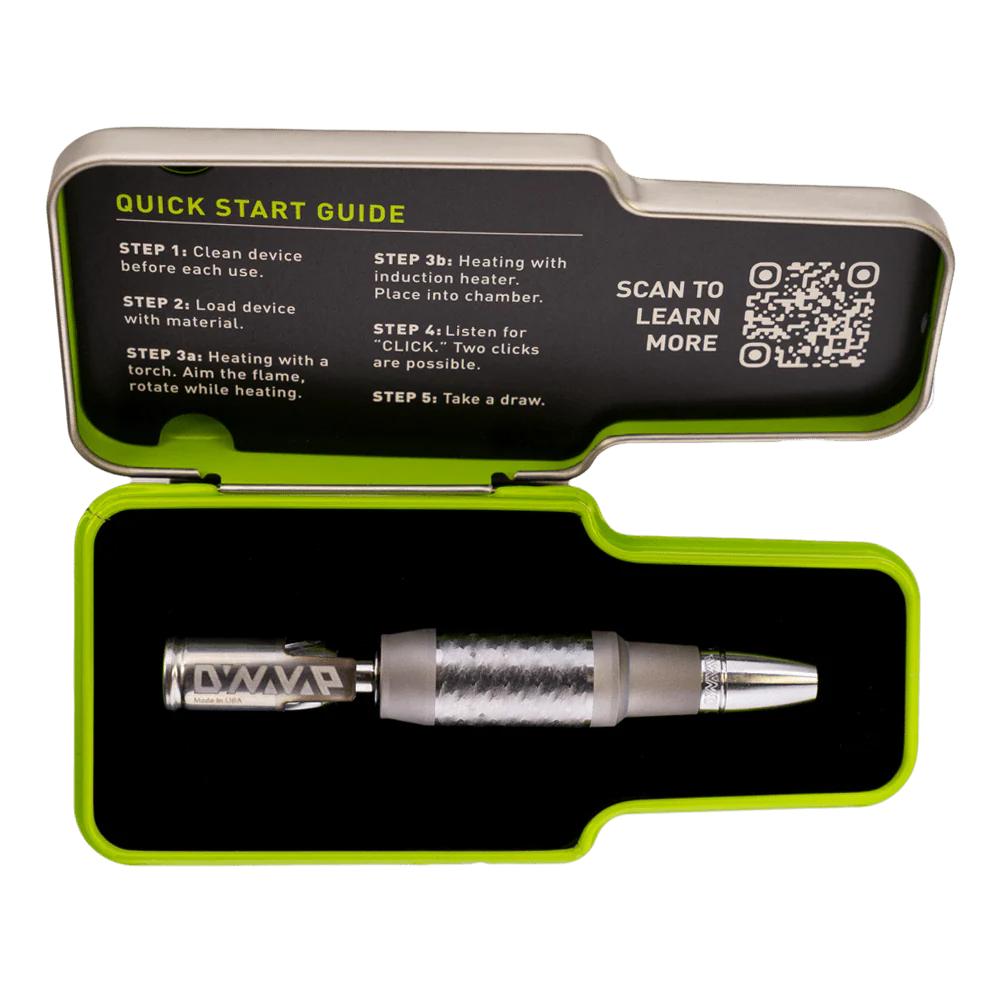 Both work. Heat the cap rim with a small jet flame or use any DynaVap-style induction heater for repeatable clicks. Works with The Wand.